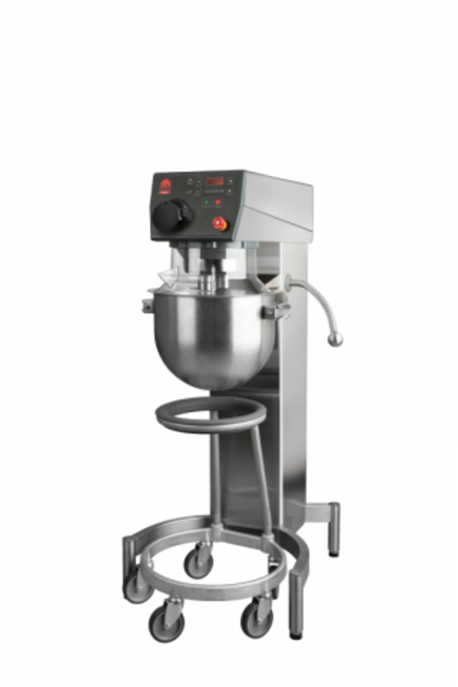 Univerzální stojací planetární hnětač KODIAK 20 s kapacitou nádoby 20 l, s plynulou regulací rychlosti a silným motorem, v nerezovém provedení, od dánského výrobce Varimixer. Manuální zdvih nádoby a elektrická regulace rychlosti.
